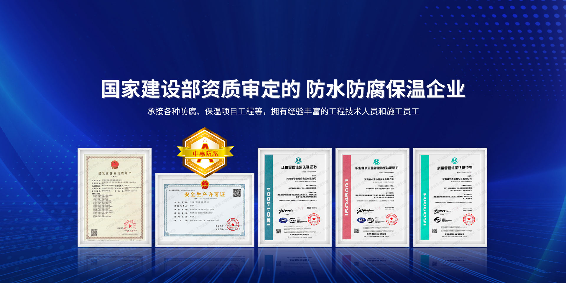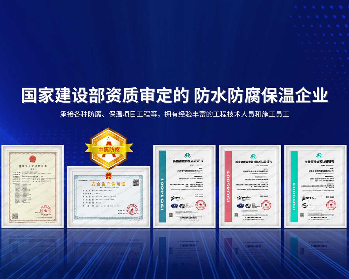 公司經營范圍:防水防腐保溫工程;消防設施工程;建筑裝修裝飾工程;建筑機電安裝工程;電力工程;建筑工程;石油化工工程;工業清洗工程;油罐清洗工程;鋼結構工程;環保工程;模板腳手架工程;電纜防火封堵、防污閃噴涂、外墻外保溫工程;各類施工勞務作業;設備維修、船舶鉚焊、涂裝;電力工程材料、建材、防水材料、防火材料、防腐保溫材料銷售,并相繼通過了GB/T19001-2008idtISO9001:2008GB/T50430-2007質量管理體系認證證書。GB/T24001-2004idtISO14001:2004環境管理體系認證證書。GB/T28001-2011idtOHSAS18001:2007職業健康安全管理體系認證證書。公司是中國防腐蝕于防護協會、中國施工企業管理協會、電力協會和中國鋼結構防水協會會員單位。 公司的經營業務涵蓋了石油、化工、電力、冶金、煤炭、船舶、國防、燃氣、水利、環保、交通運輸、航空及國防軍工和輕紡市政等行業的防腐保溫絕熱設備。鋼結構安裝、防火、防水、金屬噴鍍、聚脲噴繪、陰極保護、防滲透堵漏、玻璃鋼及各種磚版材料襯里、橡膠襯里、煙氣硫和耐酸溶劑腐蝕等工程施工。公司連續十年榮獲“省市先進施工企業”“安全生產先進單位”“重合同,守信用企業”和“AA***資質企業”的稱號。2000年被命名為市級文明單位,2002年被國家工商行政管理局命名為“重合同,守信用的企業”、被中國工業防腐蝕技術協會命名為“防腐蝕企業,能源節約及環境保護領域有豐富的經驗和***的業績。工程一次交驗合格率100%。其中攀枝花鋼鐵公司煉鐵廠四號高爐及熱風爐防腐工程、上海寶鋼公司煤氣柜防腐工程、撫順石油一廠裝置防腐項目、齊魯石化公司稀烴廠高塔防腐工程、吉林化學工業公司煉油廠油罐防腐工程、天津石化熱電廠六號爐頂棚聯絡管保溫工程、大慶油田(太倉)力神泵業工程、中國化學工程第十一建設工程、中原油田勘探局工程、中國石化銷售有限公司華北分部、魯皖輸油管道工程、貴州開磷息烽合成氨工程、陜西黃陵煤化工程、中國石油天然氣西部管道塔里木輸油工程、邯鋼集團邯寶鋼鐵公司煉鐵工程、德州供電工程、吉寶(南通)船廠工程,偃師華潤熱力工程、鄭州熱力總公司。 河南省中惠防腐安裝有限公司愿以豐富的施工經驗,***的技術,***的設備,***的管理,***的服務,竭誠為國內外廣大的用戶提供***滿意、******的工程作品。 我公司愿與國內外同仁一道,團結協作,共同推進防腐蝕行業發展! 公司地址:河南省長垣縣建設路北段360號 固定電話:0373-8866488 郵編:453400 網址:http://www_zhff_com_cn.payments2study.com